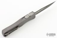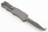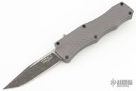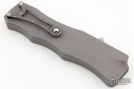 This knife features a two-tone Damascus clipoint blade. The handle has a milled aluminum frame with a Damascus pocket clip. Includes the original box and papers. Excellent Condition.