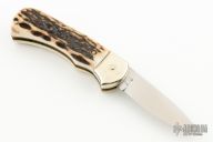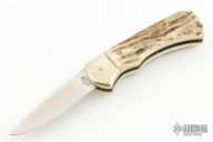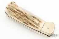 This Scale/Palm Release auto by Hubertus features a satin finished blade, nickel silver bolsters, stag scales, and brass liners and pins. Opens with a nice snap. Very fast opening. Has some light scratches, otherwise excellent condition.