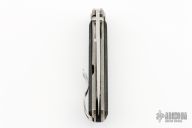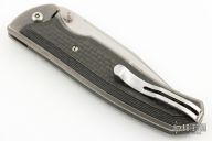 This Fire D/A by Matt Diskin is a very smooth action scale release double action. The blade features a stonewashed blade with dual thumbstuds. The handle has a tumble finish titanium frame with carbon fiber scales and lightning strike carbon fiber backspacer, tip up stainless steel clip. Firing is very smooth and fast, strong lock up, nice detent. Includes a nylon sheath. Excellent Condition.