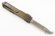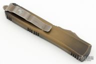 This Ultratech by Microtech features a bronzed antique apocalyptic finished blade. The handle has a bronzed aluminum frame with bronzed hardware and tip down clip. Comes with original box and papers. Dated 06/2021 and s/n 005. Has some light scratches, excellent condition otherwise.