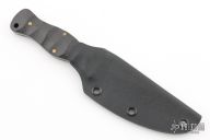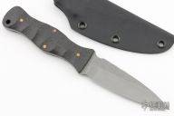 "I began making knives in November of 2002. Due to my background in law enforcement, I’ve always enjoyed making the smaller concealed carry sized knives. Knives that will actually be used instead of being stuck in a safe. The ones that I make are generally the same ones that I would carry at work, on a SWAT call or working in plain clothes. Since I grew up hunting and fishing, I also make a few that are suited for that role. Since I generally specialize in making using knives for personal defense, they usually have a swedge on the blade. All of my knives are made out of CPM154 steel from Crucible Steel and are heat treated by Peters Heat Treating. Occasionally I may have some Carpenter CTS-XHP or Crucible 3V. You won’t find any polished parts on my knives. They have a machine satin finish which is all that’s necessary for a working knife. Handle material is G-10 or parachute cord. Black G-10 is standard but occasionally I have a few different colors lying around. I don’t use stag or wood. I secure the handles on the blade using hidden bolts and 2 ton epoxy, so they are not removable. Sheaths are made out of kydex. The sheaths have rivets that are spaced to take a TekLok (not supplied) or you can attach an IWB loop or static cord."