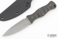 This fixed blade from Ken Brock features a stonewashed drop point blade with fileworked spine, full tang construction, .112" Blade Stock and 1.005"Blade Depth. The handle has carbon fiber scales with brass pins. Comes with a kydex sheath. Excellent condition.