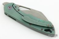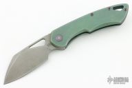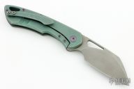 This Whippersnapper from Olamic Cutlery features a tumbled blade, thumbhole, notched thumbrest and front flipper. The handle has an anodized titanium frame titanium pocket clip is positioned for tip up carry, floating, anodized titanium backspacer.  Includes a padded zippered case. Excellent Condition.