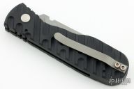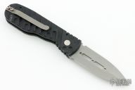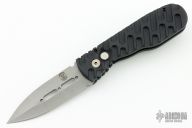 This Gripper Auto by Rob Dalton features a dagger blade with a false top edge. The handle has a black milled aluminum frame. Nice action, lockup and blade seating. Has some light scuffs, otherwise excellent condition.