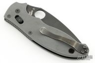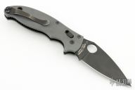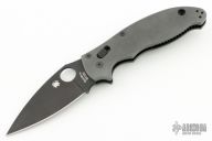 This Manix 2 by Spyderco has a black blade with notched thumbrest and thumbhole. The handle has Grey G-10 scales, black stainless steel liners and clip. Has a couple light scuffs, excellent condition otherwise.