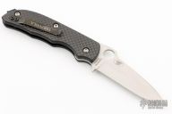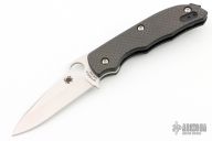 This Bob Terzuola designed slipjoint by Spyderco has a satin finish blade and textured black carbon scales. Nice one-handed opening with solid half- and full-stop. Excellent condition.