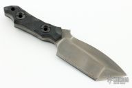 This knife ha black chisel groun blade with a full tang construction. .189" Blade Stock. The handle has black G10 scales. Has some light oxidation on the blade otherwise the knife is in excellent condition.