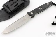 This Socom Alpha by Microtech features a stonewash tanto blade with a notched thumb ramp and a full tang construction, .162" Blade Stock. 1.201" Blade Depth. The handle features g10 scales. Includes a kydex sheath with a belt clip. Dated 10/2019.  S/N 792. Excellent Condition. Comes with original box and papers.