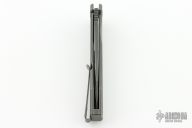 The titanium pocket clip was designed to hide the entire knife while clipped to your pocket. The clip was also designed to have a perfect "swoop" to make it easy to mount to your pocket, belt or pack. The clip has a tumbled gunmetal gray finish which keeps your knife on the down low and we made the screws on the clip flush with the handle, easy in and out of the pocket, no snags. Tip up, left or right hand carry.