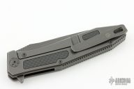 The scales are made of Grade 5 Titanium with Carbon Fiber inlays, a design signature of the Scorpion Elite Series. The large handle is 4.75" which offers plenty of room for even XL hands. We added two rows of jimping next to the titanium backspacer for a non-slip grip.