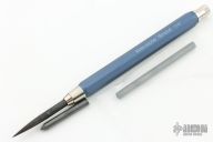 This spike pen features a black oxide finished spike that is deployed by pressing the button at the rear of the pen. This pen has been internally modified to accept and eject the spike with the push of the rear button. A piece of pencil graphite is positioned at the tip to conceal the spike. Works as a functioning pencil. New from maker. Very clever.