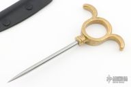 This SOE Ring Spike by GHK features a differentially hardened Stubbs Tool Steel tool steel spike with .215" diameter. The handle is high tensile manganese bronze. Comes with a kydex sheath. New from maker.