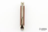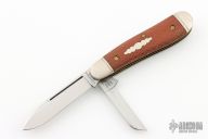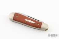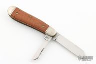 This knife by Great Eastern Cutlery features two satin finished blades both with single nail nicks. The handle nickel silver front/rear bolsters, micarta covers over brass liners. Comes with original packaging. Excellent condition.