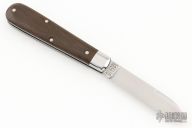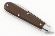 This slipjoint by Great Eastern Cutlery features a satin finished drop point blade with a single nail nick. The handle has stainless bolsters, green linen micarta covers, stainless steel liners and spring. Has half stop. Includes the original packaging.  Excellent condition.