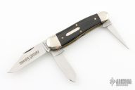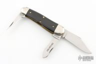 This knife by Great Eastern Cutlery features satin finished blades all with nail nicks. The handle has nickel silver bolsters, buffalo horn covers and brass liners. Includes the original packaging. Excellent Condition.