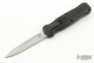The Pagan from Benchmade features a stonewashed, chisel ground spear point blade. The handle is comprised of milled and black coated aluminum. Has a couple light scuffs, otherwise excellent condition.