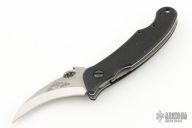 This Elvia by Emerson Knives features a stonewashed hawkbill blade with a black thumbdisc. The handle has black G-10 scales, titanium liners and a black stainless steel tip up clip. Comes with original box and papers. Excellent condition. #0169. Comes with a Sneak Reaper clip installed.