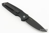This TR-3 by Pro-Tech Knives features a DLC finished spear point blade. The handle has a black aluminum handle with stainless steel tip up clip. Includes PT drawstring pouch. Excellent condition.