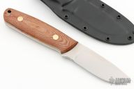 This is a KS-1 by Dozier Knives features a satin finished blade with .158" blade thickness and 1.137" blade depth, full tang construction. Natural canvas micarta scales with brass pins. Right handed kydex horizontal sheath. Brand new from maker.