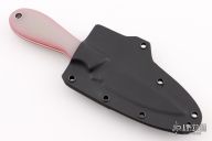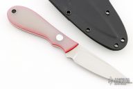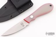 This K-47 Black Widow Caper by Dozier Knives features a satin finished blade with .100" blade stock and .818" blade depth, full tang construction. The handle has natural G-10 scales with red liners and aluminum pin and lanyard hole. Comes with a kydex sheath. New from maker.