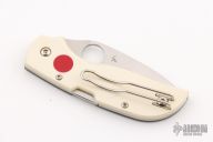 The knife's thin, leaf-shaped blade is full-flat ground from CTS XHP stainless steel and has a handsome satin finish. It includes a 50/50 index-finger choil at the juncture of the ricasso and handle that allows the option of a forward-positioned "choked-up" grip for enhanced control. Both the choil and the opposing thumb ramp on the spine of the blade include thoughtfully placed jimping (textured grooves) for even greater grip security. Mirroring the completely symmetrical ergonomics of the handle, the blade features a fully accessible Trademark Round Hole that allows easy one-handed opening with either hand.