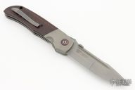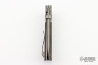 This Eagle Rock linerlock is from Custom Knife Factory and designed by Bob Terzuola. It features a tumble finish multi-ground blade with fullers and false top edge, notched thumbrest and a thumbdisc. The handle has Timascus pivot collars, stonewash bolsters, carbon fiber scales, stonewash titanium liners, stonewash backspacer, tip up titanium clip. Nice blade seating, detent, and lockup. Excellent work. Comes with a zippered case and COA. Excellent condition.
