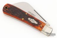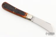 This Harvester from Great Eastern Cutlery features a satin finished hawkbill style blade with swedge. The handle has pinched and fluted nickel silver bolsters, amber jig bone covers over brass liners and stainless steel spring, lanyard hole at butt. Has Half-stop. Excellent condition. Comes with original packaging.