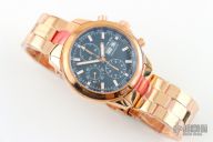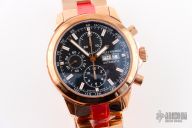 Men's Sport-II Swiss Made Automatic Chronograph, Polished Rose Gold Tone Case, Genuine Brown Crocodile Strap with White stiching and cork lining, Black Dial with Raised Rose Gold & White Luminous Markers