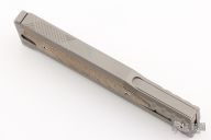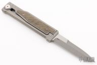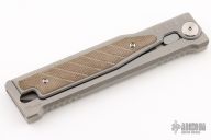 • Bead blasted titanium handle with textured Green Micarta scales.