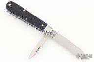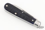 This slipjoint by Great Eastern Cutlery features satin finished blades with nail nicks. The handle has stainless bolsters, blue jig bone covers, stainless steel liners and spring. Has half stops. Comes with original tube. Excellent condition.