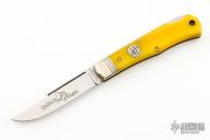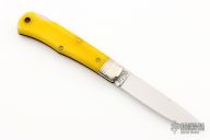 This Trapper by Northfield Knives features a polished blade with nail nick. The handle has nickel silver pinched and fluted bolsters, bone covers with brass liners/pins. Comes with original tube. Excellent condition.