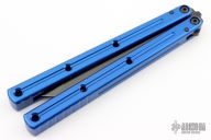 The highly anticipated Krake Raken balisong butterfly knife offers the first live-blade bali from Squid Industries. It features all of the precision-engineered smoothness of a Squid trainer, updated with a beautifully finished tanto blade. The channel constructed aluminum handles are built with rounded edges, a crowned spine, and bushings. The Krake Raken has been upgraded from 6061 to a 7075 aluminum alloy, which boasts a higher strength and is more durable to drops and use.