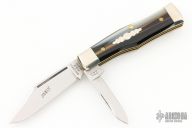 Northfield #22 Magnum Pattern featuring smooth Root Beer Float Acrylic handles with nickel silver bolsters and brass liners. This knife features two 1095 carbon steel blades, a regular clip and spear, which were frozen forged and hammer tested before receiving a polished finish. This classic Magnum #22 Great Eastern has a traditional shield. These come in a unique tube packaging with company information on the front. Excellent Condition.