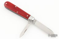This slipjoint by Great Eastern Cutlery features satin finished blades with nail nicks. The handle has stainless bolsters, camel Bone covers, stainless steel liners and spring. Has half stops. Comes with original tube. Excellent condition.