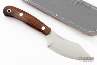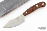 This fixed blade from Bark River Knives features a satin finish blade with .128" blade stock and 1.501" blade depth. The handle is comprised of Desert Ironwood scales with G10 liners over full tang construction. Lanyard bail on pommel. Includes leather sheath and original box. Excellent condition.