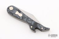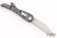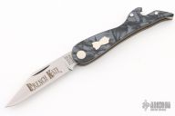 This knife by Great Eastern Cutlery features a satin finished blade with nail nick. The handle has black pearl acrylic covers over brass liners and a stainless steel backspring. Includes the original tube and papers. Excellent Condition.