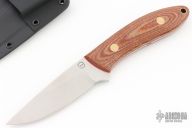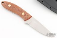 This K-56 Evo Hunter by Dozier Knives features a satin finished blade, .137" blade stock and 1.107" blade depth, full tang construction. The handle has natural canvas micarta scales with red liners, brass pins and lanyard hole. Comes with kydex sheath with belt clip. New from maker.