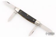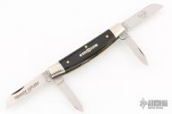 This slipjoint from Great Eastern Cutlery features four polished blades with nail nicks. The handle has nickel silver bolsters and black micarta covers with nickel silver escutcheon, brass liners and steel backsprings. Includes original packaging and COA.  Excellent Condition.