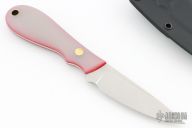 This K-47 Black Widow Caper by Dozier Knives features a satin finished blade with .099" blade stock and .822" blade depth, full tang construction. The handle has natural G-10 scales with red liners, brass pin and lanyard hole. Comes with a kydex sheath. New from maker.