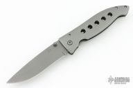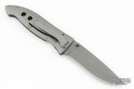 This frame lock is a Tom Mayo design executed by Buck Knives. It features a bead blasted drop point blade with dual thumbstuds. The handle has a drilled steel frame.  Stainless steel tip down clip and lanyard hole in pommel.  Includes the original box.  Excellent Condition.