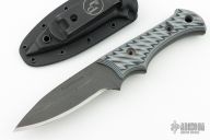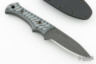 The Bloodshark fixed blade is Tracker Dan's most popular design. The Bloodshark has a spearpoint point blade made from Nitro-V stainless steel with a Rockwell hardness rating of 59-60. The knife features a 3.5" blade that includes a Cobalt Cerakote finish for corrosion resistance and durability. Weighing in at only 5 oz, the Bloodshark is deceptively light, and it's smaller size makes it ideal for everyday carry. The beveled and contoured grips feature a diagonal texturing that offers a very secure grip without being overly aggressive or uncomfortable, performing well in wet or dry conditions.