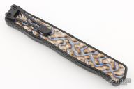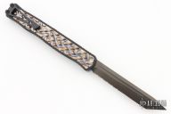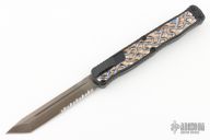 This Cleric II OTF by Heretic Knives features a DLC stonewashed tanto Magnacut partially serrated blade with false top edge and fullers. The handle has a black aluminum frame with flamed titanium inlays, DLC stainless steel tip down clip with ceramic ball. Comes with box, lube and papers. New from maker!