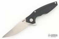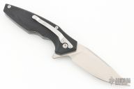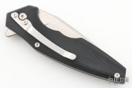 This Kinetic Flipper from Brous Blades has a satin finished blade with a flipper. The handle has black G-10 scales over bead blasted stainless steel liners, stainless steel tip down clip. Nice detent, lockup and blade seating. Comes with origianl box and COA. one of 250. New from maker!