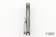 "Jason Brous began his efforts in knifemaking with the benefit of nearly 10 years of experience in CNC machining. His father owns a shop that specializes in the custom machining of high-precision components, mainly for the medical industry. Jason spent a lot of time in his father’s shop while growing up, and by his mid teens was actively helping out with production. His skills and knowledge steadily increased and by the time he was 20 he was a seasoned and very competent machinist. Jason's interest in knives actually began with art - specifically a style called “Bio-mechanical” - as practiced by one of his favorite artists, a Brazilian painter and tattooist named Lango. Biomechanical art (also called Biomech) is a surrealistic style of art that combines elements of machines and robotics with organic animal features. Intrigued by this style of art and its similarity to many fantasy knives, Jason figured that knifemaking would be a natural extension of his metalworking skills and an appropriate medium for his artistic ideas. Although he had no specific training in knifemaking, in 2010 he designed and made his first knife - a fantasy design with a Biomech flavor. Through persistent trial and error, Jason changed his style of knife design to focus on functional simplicity, while still maintaining a strong artistic signature. His early successes came in the form of a series of stout neck knives with dual finger-hole grips. Fans of these “Silent Soldier” neck knives began asking for other expressions of the design. Since then, Jason has created numerous variations including a clip point version, a tanto version and the very popular folder version called the Silent Soldier Flipper."