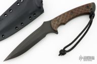 This Ares features a CPM S35VN blade with black coating (SpartaCoat - PVD - ZrN) and micarta scales. Includes canvas sheath and a Kydex sheath. Light sheathing marks are visible on the blade otherwise the knife is in excellent condition.