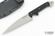 This C/K Dragon by CRKT is a Crawford and Kasper design, it has a bead blasted blade with notched thumbrest, .134" blade stock and 1.193" blade depth, full tang construction. Comes with a black sheath. Excellent condition.