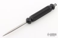 This Push Pick by Pat & Wes Crawford is a very unique concealable weapon, that is great for covert collectors. Completely hand made from the finest materials. The blade is stainless steel and the knurled handle is anodized hard aluminum. The blade screws in and out so that it can be made into an ice pick, a pick dagger, or the blade will store inside the handle. Very light and strong. Excellent condition.