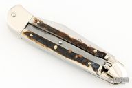 This leverlock auto by Hubertus features a mirror polished clip point blade, nickel silver double bolsters, stag scales, and brass liners and pins. Opens with a nice snap. Very fast opening. Comes with original box. New condition.