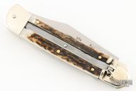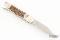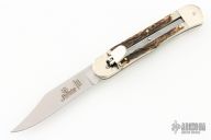 This leverlock auto by Hubertus features a mirror polished clip point blade, nickel silver double bolsters, stag scales, and brass liners and pins. Opens with a nice snap. Very fast opening. Comes with original box. New condition.