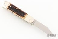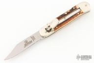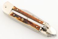 This leverlock auto by Hubertus features a mirror polished clip point blade, nickel silver double bolsters, stag scales, and brass liners and pins. Opens with a nice snap. Very fast opening. Comes with original box. New condition.